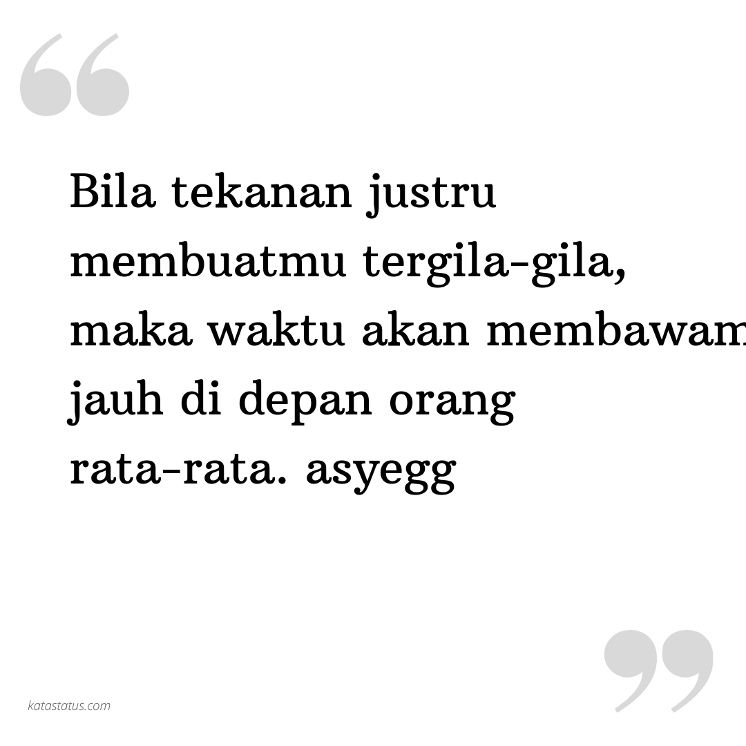 Bila tekanan justru membuatmu tergila-gila, maka waktu akan membawamu jauh di depan orang rata-rata. asyegg