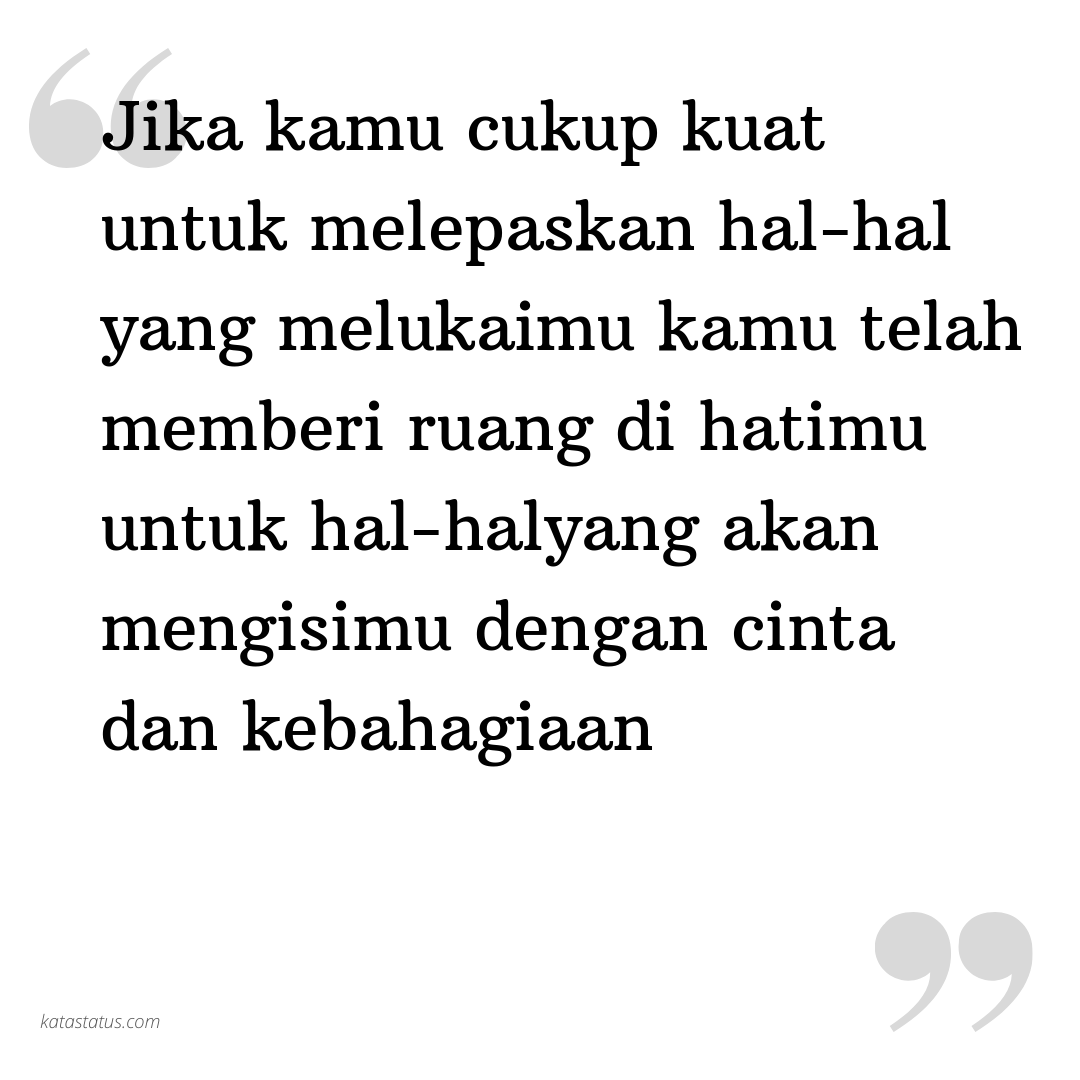 Jika kamu cukup kuat untuk melepaskan hal-hal yang melukaimu kamu telah memberi ruang di hatimu untuk hal-halyang akan mengisimu dengan cinta dan kebahagiaan