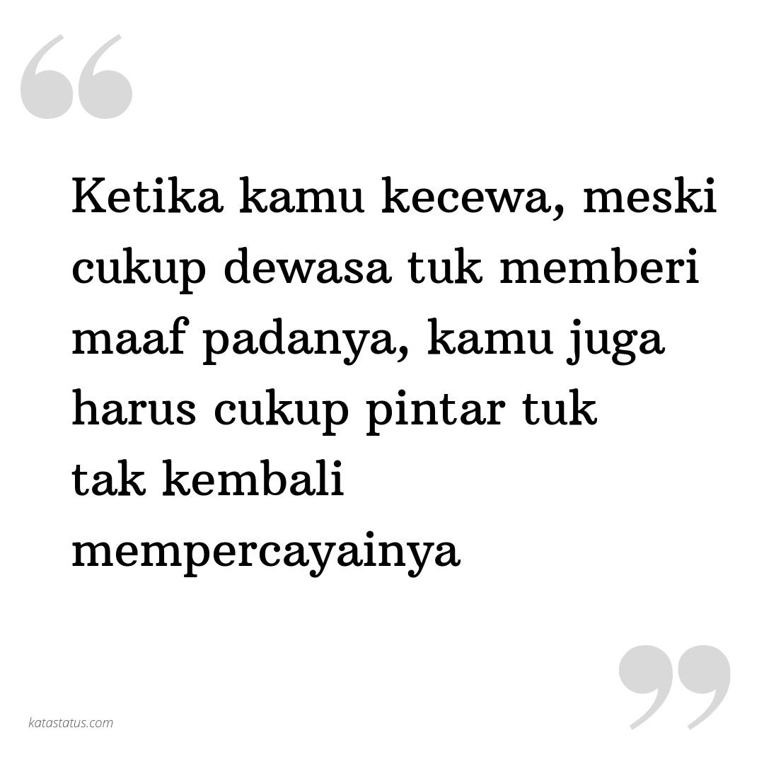 Ketika kamu kecewa, meski cukup dewasa tuk memberi maaf padanya, kamu juga harus cukup pintar tuk tak kembali mempercayainya