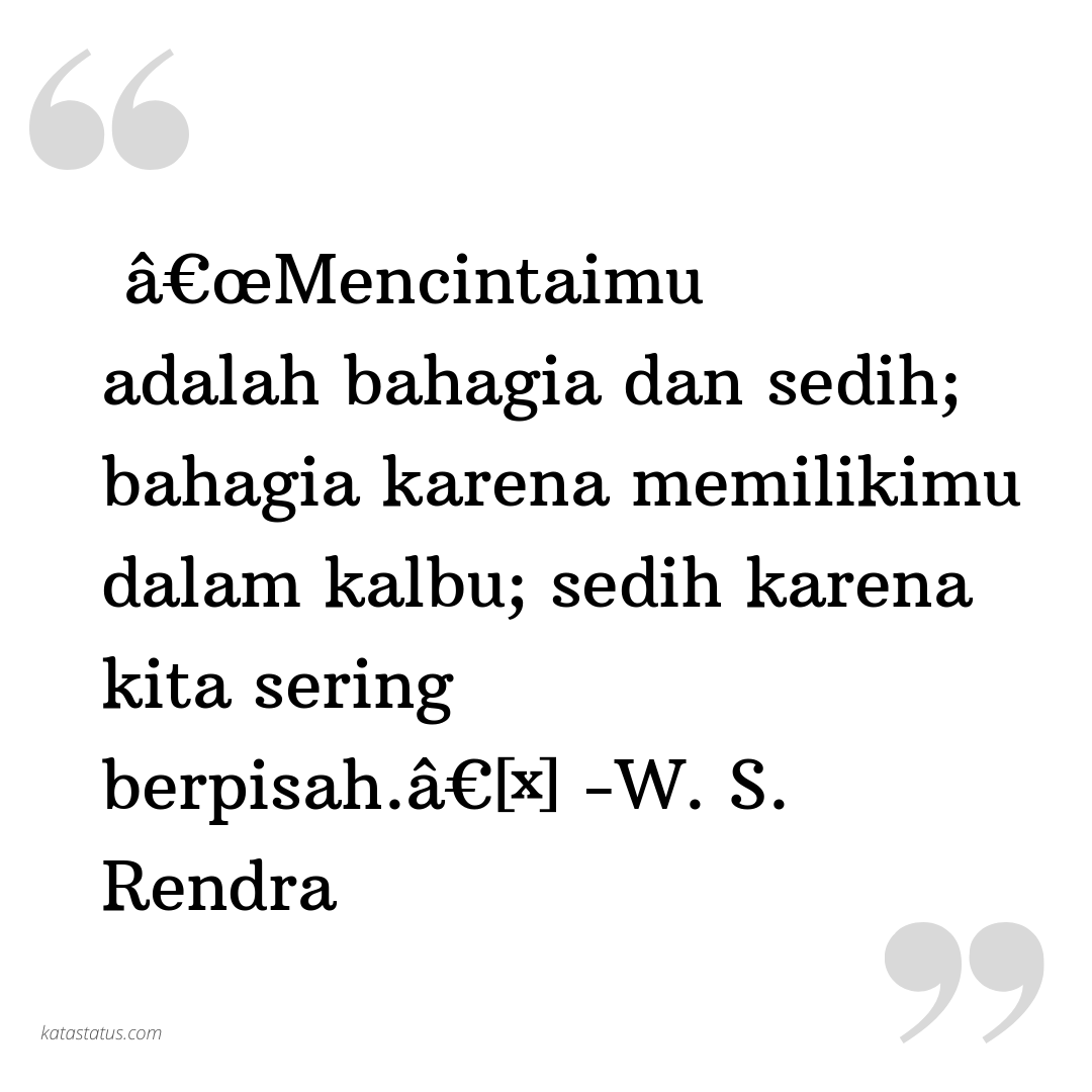 “Mencintaimu adalah bahagia dan sedih; bahagia karena memilikimu dalam kalbu; sedih karena kita sering berpisah.†-W. S. Rendra