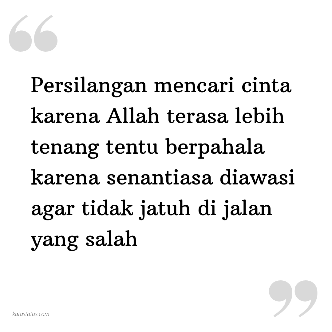 Kata Bijak IslamiPersilangan mencari cinta karena Allah terasa lebih tenang tentu berpahala karena senantiasa diawasi agar tidak jatuh di jalan yang salah