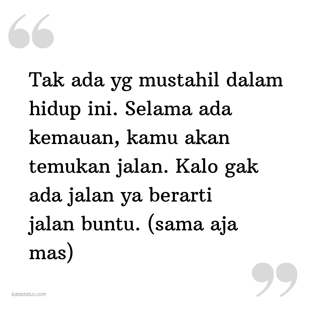 Lucu Gokil NgakakTak ada yg mustahil dalam hidup ini. Selama ada kemauan, kamu akan temukan jalan. Kalo gak ada jalan ya berarti jalan buntu. (sama aja mas)