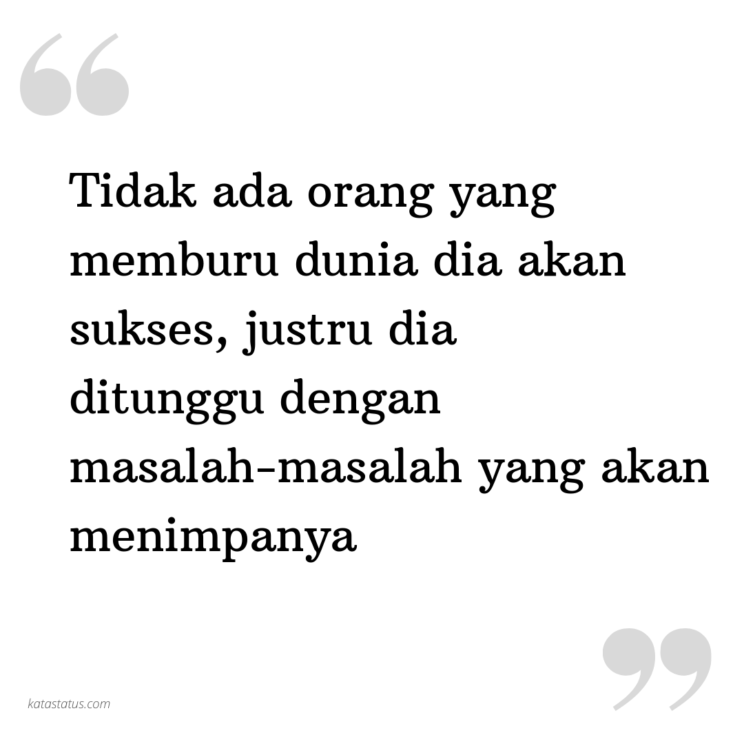 Kata Bijak IslamiTidak ada orang yang memburu dunia dia akan sukses, justru dia ditunggu dengan masalah-masalah yang akan menimpanya