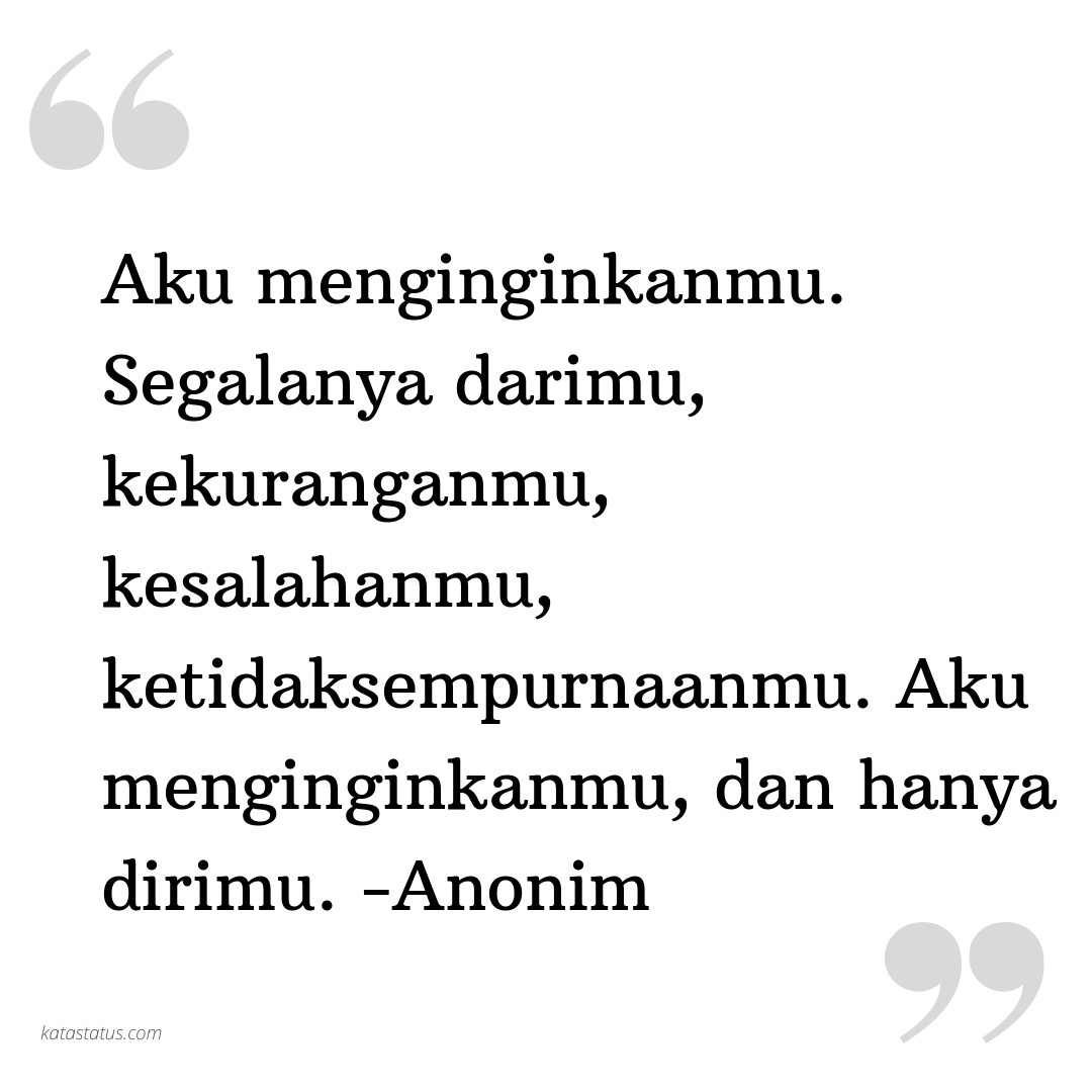 Aku menginginkanmu. Segalanya darimu, kekuranganmu, kesalahanmu, ketidaksempurnaanmu. Aku menginginkanmu, dan hanya dirimu. -Anonim