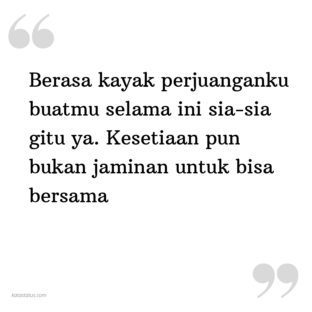 Berasa kayak perjuanganku buatmu selama ini sia-sia gitu ya. Kesetiaan pun bukan jaminan untuk bisa bersama