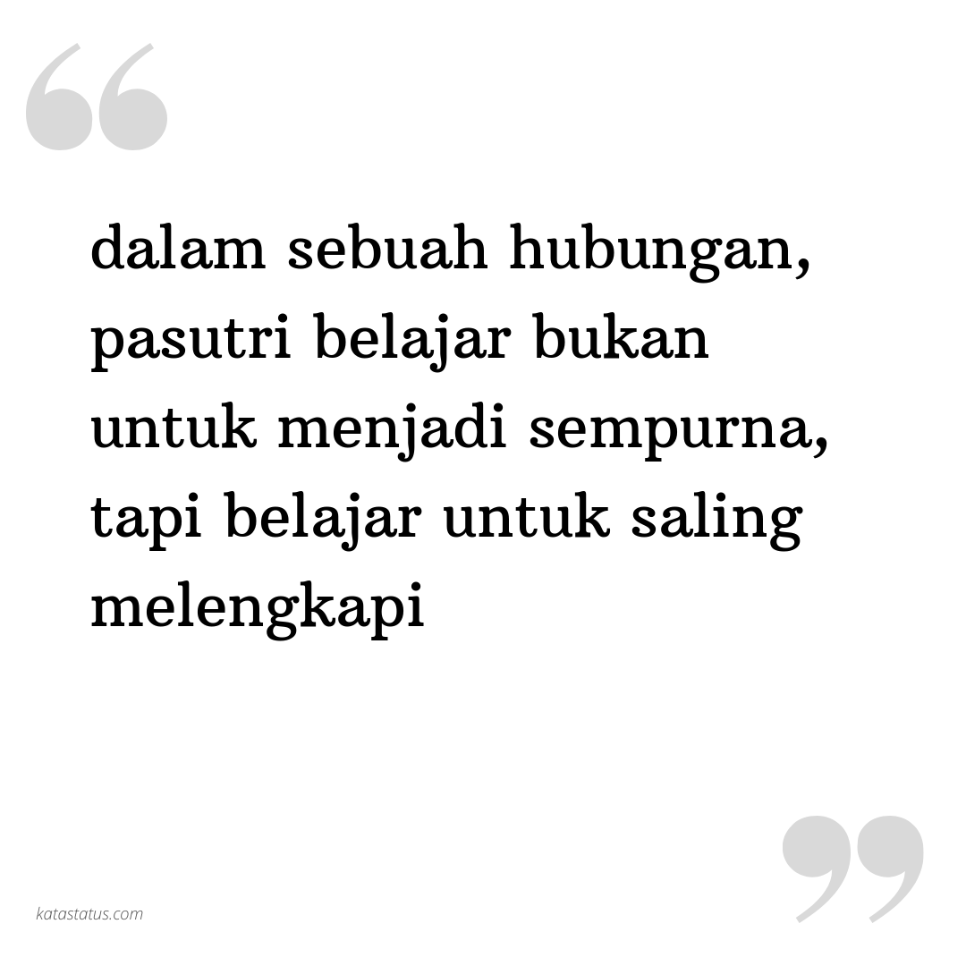 dalam sebuah hubungan, pasutri belajar bukan untuk menjadi sempurna, tapi belajar untuk saling melengkapi
