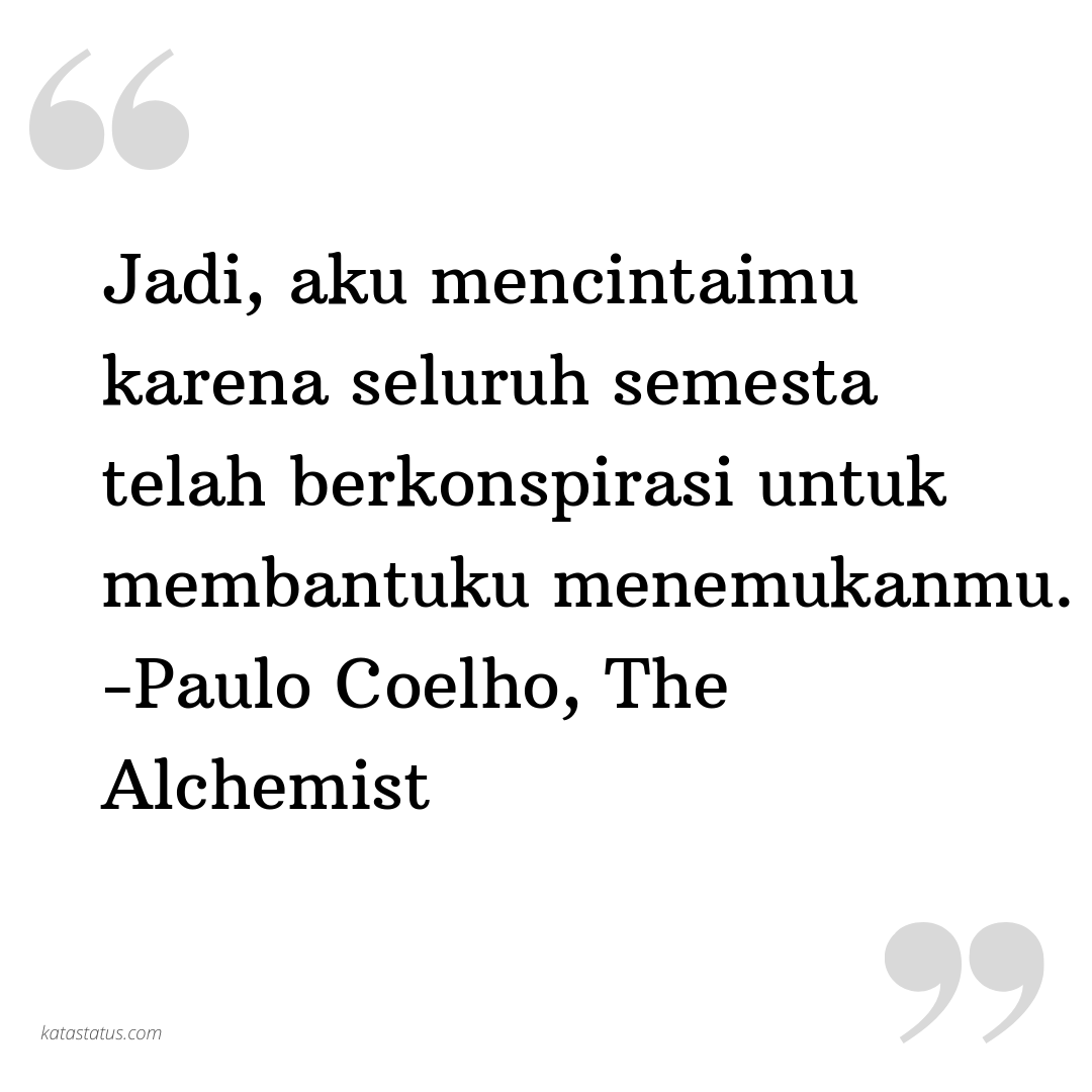 Jadi, aku mencintaimu karena seluruh semesta telah berkonspirasi untuk membantuku menemukanmu. -Paulo Coelho, The Alchemist