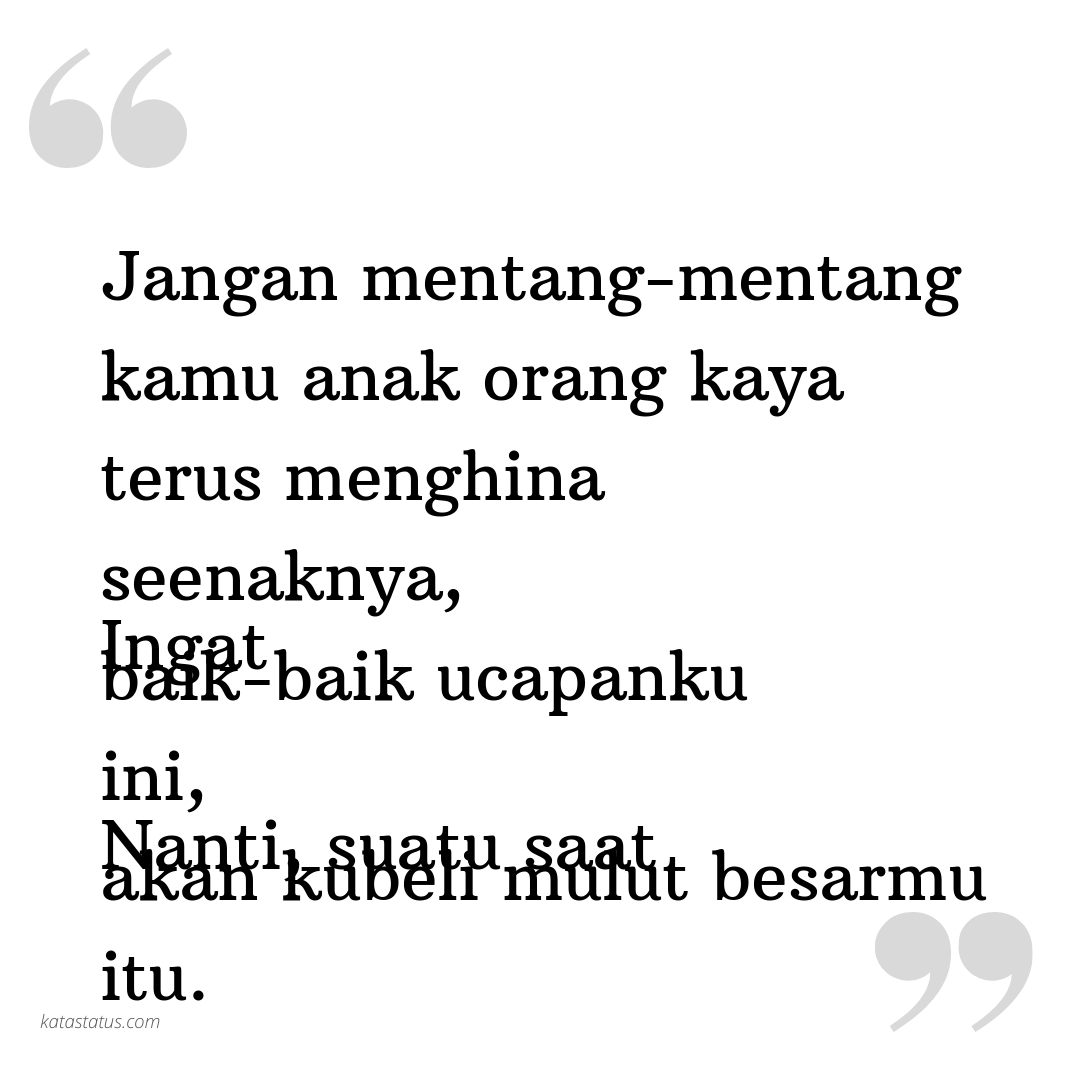 Jangan mentang-mentang kamu anak orang kaya terus menghina seenaknya, Ingat baik-baik ucapanku ini, Nanti, suatu saat akan kubeli mulut besarmu itu.