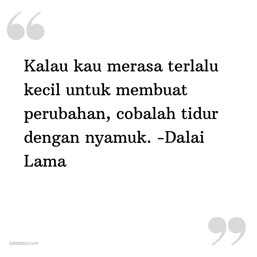 Kalau kau merasa terlalu kecil untuk membuat perubahan, cobalah tidur dengan nyamuk. -Dalai Lama