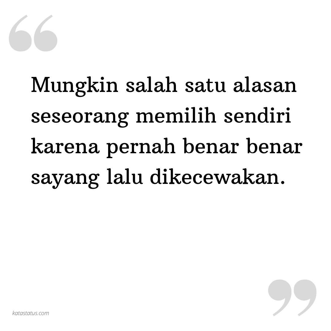 Mungkin salah satu alasan seseorang memilih sendiri karena pernah benar benar sayang lalu dikecewakan.