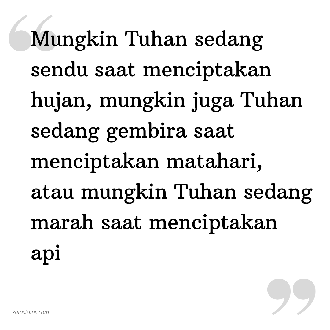 Kata Bijak IslamiMungkin Tuhan sedang sendu saat menciptakan hujan, mungkin juga Tuhan sedang gembira saat menciptakan matahari, atau mungkin Tuhan sedang marah saat menciptakan api