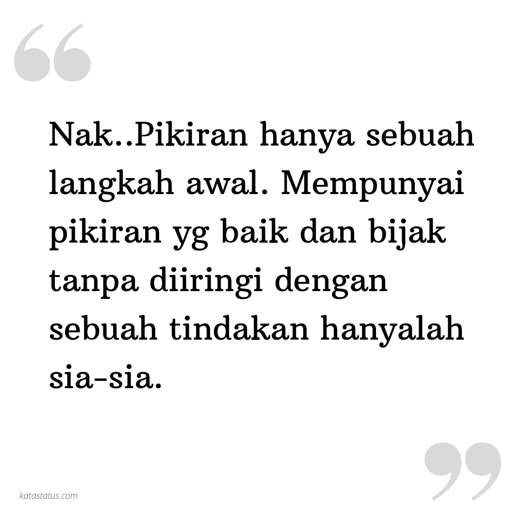 Nak..Pikiran hanya sebuah langkah awal. Mempunyai pikiran yg baik dan bijak tanpa diiringi dengan sebuah tindakan hanyalah sia-sia.