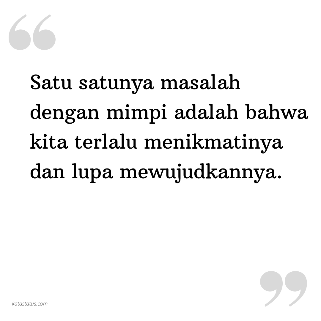 Satu satunya masalah dengan mimpi adalah bahwa kita terlalu menikmatinya dan lupa mewujudkannya.