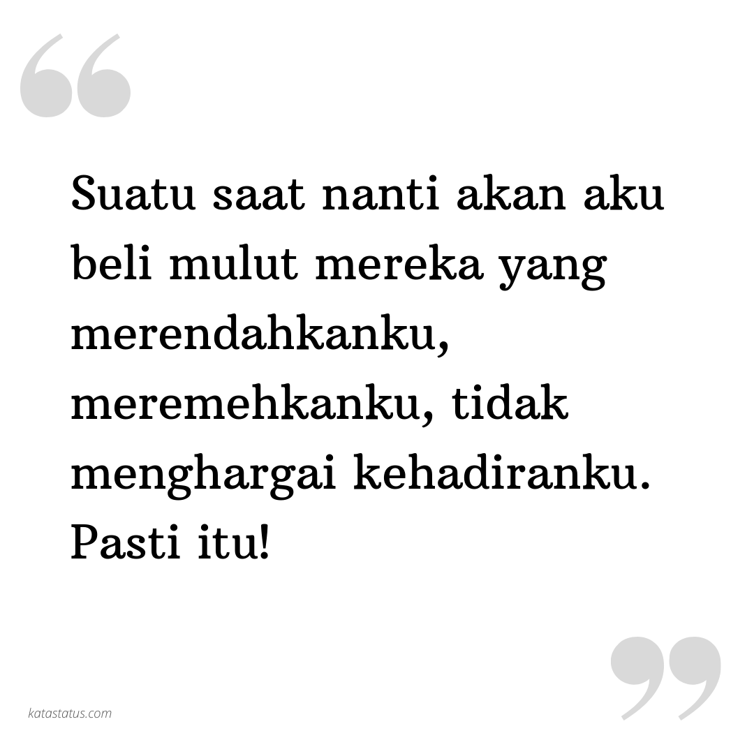 Suatu saat nanti akan aku beli mulut mereka yang merendahkanku, meremehkanku, tidak menghargai kehadiranku. Pasti itu!
